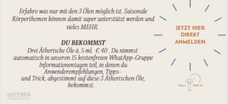 (à. je 5 ml) und tauche gemeinsam mit uns 15 Tage in die Welt dieser drei Ätherischen Öle ein!